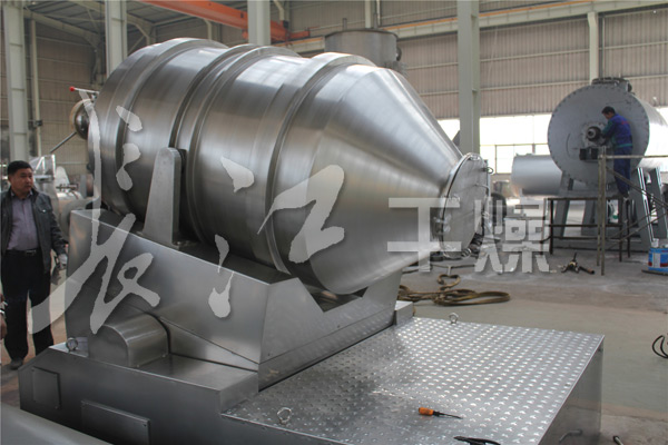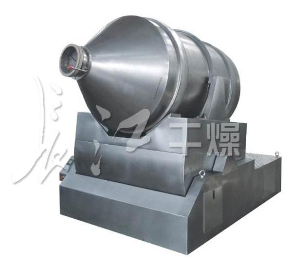 EYH二維混料機的轉筒可同時進行二個運動,一個為轉筒的轉動,另一個為轉筒隨擺動架的擺動。被混合物料在轉筒內隨轉筒轉動、翻轉、混合的同時,又隨轉筒的擺動而發生左右來回的摻混運動,在這兩個運動的共同作用下,物料在短時間內得到充分的混合。EYH二維混料機適合所有粉、粒狀物料的混合。