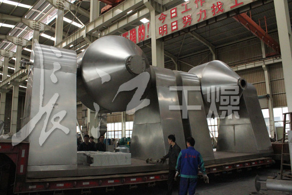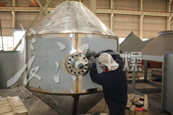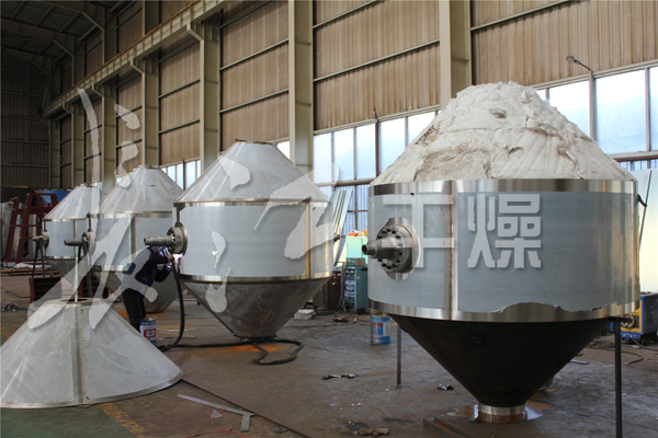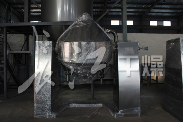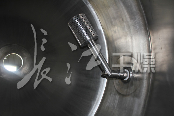 在動力驅動下,罐體作緩慢旋轉,罐內物料不斷地混合,從而達到強化干燥的目的。