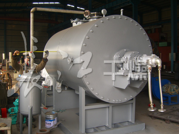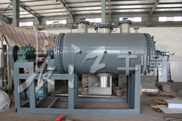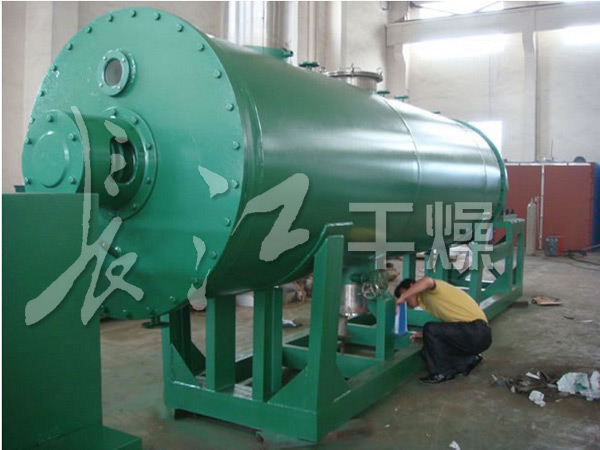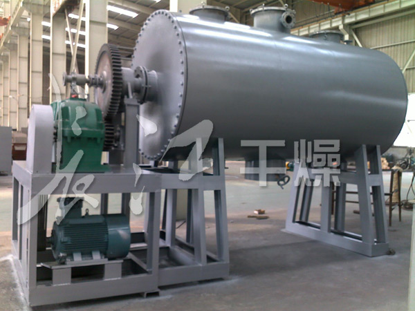 本機(jī)是一種新穎臥式間歇式真空干燥設(shè)備,濕物料經(jīng)傳導(dǎo)蒸發(fā),帶有刮板攪拌器不斷清除熱面上的物料,并在容器內(nèi)推移形成循環(huán)流,水份蒸發(fā)后由真空泵抽出。